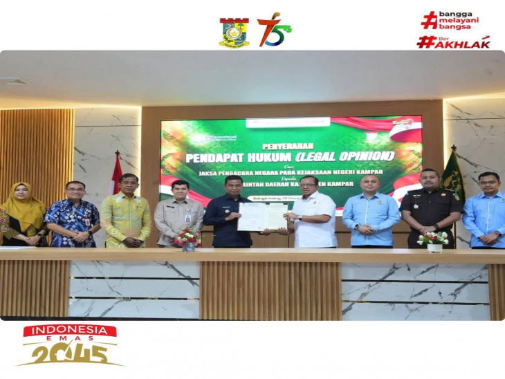 Bupati Kampar H. Ahmad Yuzar, S.Sos, MT didampingi Pj Sekda Kampar Ardi Mardiansyah, S.STP, M.Si dan Inspektur Kabupaten Kampar mendapat Penghargaan dari Kejaksaan Negeri Kampar (Legal Opinion) dan memberikan penghargaan kepada tim jaksa pengacara negara dari Kejaksaan Negeri (Kejari) Kampar, yang disenggarakan di Aula Kantor Kejaksaan Negeri Kampar, Kamis (18/12/2025).